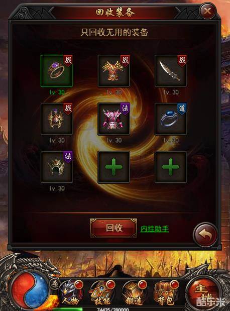 回收无用的装备可以获得强化石和金币,所以当有很多无用的装备时,玩家就可以选择回收了。