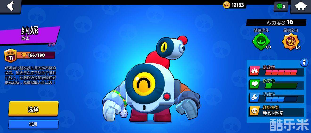 纳妮是目前荒野乱斗,所有英雄中操作难度最大的一个英雄。虽然具有很强的攻击力,但是对预判要求很高,所以命中率很低。没有特别适用的模式。