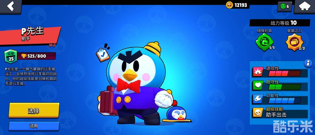 p先生具有很强的骚扰性,同时其攻击也很有特色,箱子爆炸可以越墙。但是没有星徽的p先生攻击距离会显得稍短,骚扰能力也会大幅下降,攻击能力也显得不足。所以前期收益不大。