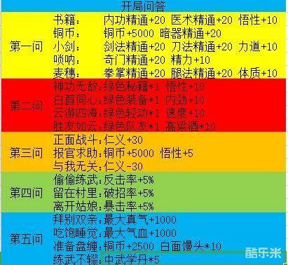 我的侠客开局在这个游戏中的需要回答一些问题,通过这些问题我们可以获得加成,下面小编带来的就是我的侠客开局选择推荐,通过不同的选择加成不同,如果知道自己要怎么玩,自然是要选择最适合的属性。
