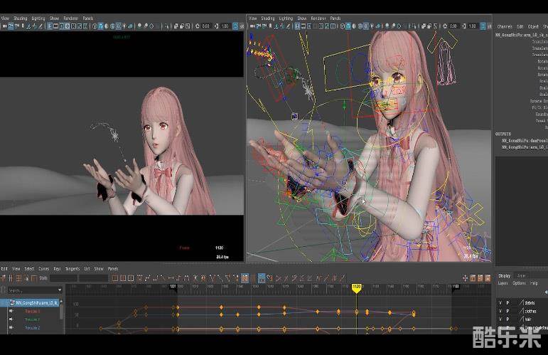 《星海之梦》CG中暖暖那飘逸且浓密的粉色长发让不少观众印象深刻,尤其是根根分明的发丝,赋予了暖暖真实且灵动的表现力。而在花絮视频中也可以看到,叠纸动画在建模阶段就为暖暖制作了精细模型,加上发尾的动作控制,打造出了真实的头发质感和飘逸感。
