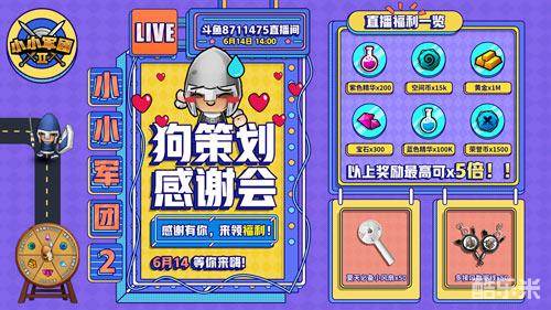 为庆祝正式首发一个月,《小小军团2》官方将于6月14日14:00在斗鱼直播平台开启官方直播。直播过程中不仅会发放游戏内资源(精华、黄金、宝石等)作为福利,更有周边好礼相赠。