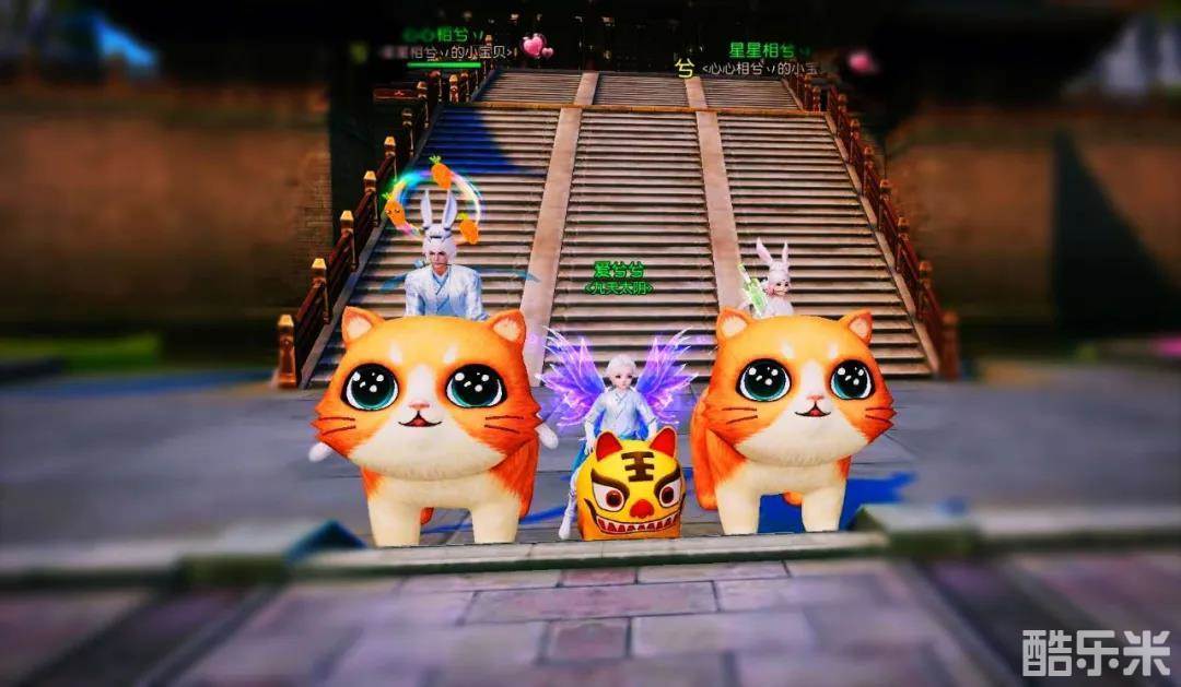 《天下》手游情缘摄影大师又双叒叕出新作了!首先给大家带来的是“星星相兮丷”大佬的“全家福”摄影,这次主要采用的是对称布局的美学构图。只见照片中,左右两边是骑着胖橘“喵不可言”的她和情缘,橘猫圆润的脸蛋与毛茸茸的尾巴让整个画面都洋溢着快乐的气息,宝石绿色的卡姿兰大眼睛更像是倒映着星空般令人一眼沉醉。画面的中间位置则是他们的可爱儿子,正有模有样地骑着一只布老虎,兴奋地摇来摇去,就连额头霸气十足的“王”字都沾上了几分温馨的感觉。