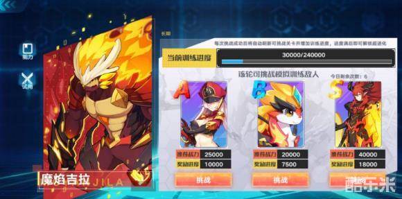 这次超进化是要进行觉醒挑战,挑战不同难度的关卡获得不同的进度,总进度到24000就开启超进化,共有4种不同难度分别为:B,A,S,SS