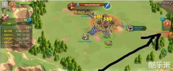 1.首先我们刚进入战场是,锤女一定是矛形态,【所有队员,分散到四角进行围殴】,这样的话可以保证boss的扇形aoe总会有一个人不会被打中,也就不会被叠加上debuff(被套上debuff会在右边你的主将头像下面出现一个红色的小图标,如下图黑色箭头指向的地方),这一点十分重要,等下你会明白的