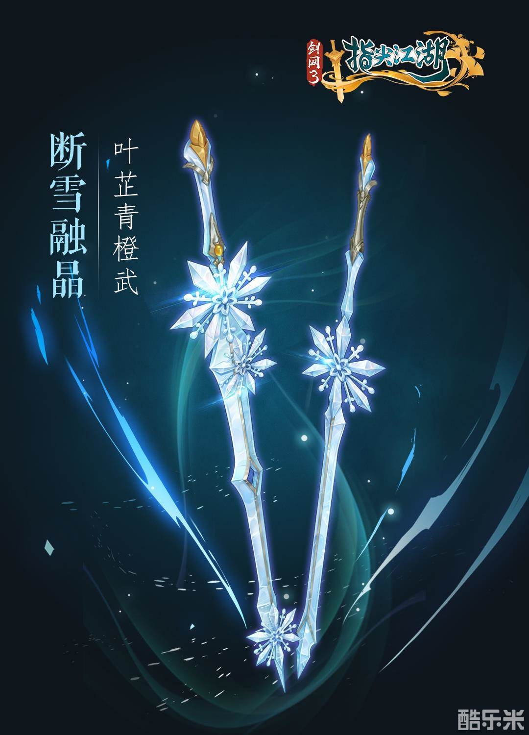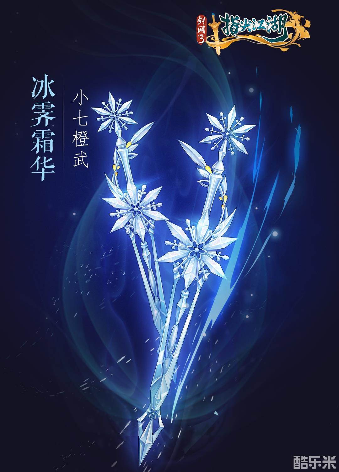 铸剑世家藏剑山庄为七秀订制的剑器之一。其原料质地坚硬,色泽雪亮更胜白银,便依着六棱冰花设计锻造而成,舞之端的是香雪缱绻,江海凝光。同七秀其他几人的原是一套,小七因此十分爱惜,从不肯轻易示人。