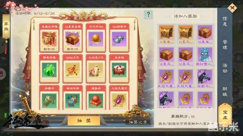 此次《绿色征途》手游嘉年华版本的热门看点是福利向的家族宝库、老史试炼,和玩法向的跨服国战。其中,与老玩家相关的是家族系统附属的“家族宝库”玩法。6月12日-26日活动期间,家族成员参与某些玩法都能获得个人积分,同时为家族贡献等量积分。族员可消耗“个人积分”在宝库中抽奖,族长/副族长可消耗“家族积分”向宝库中投放稀有奖励。