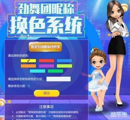 在“指尖王者”全新版本中,除了可以体验升级的快乐,我们还新增了“特殊昵称颜色笔”。使用后,大家可以根据自己的个性改变昵称的色彩。如果你是安静的,你的昵称可以是蓝色的;如果你是热情的,你的昵称可以是红色的;如果你是浪漫的,你的昵称可以是紫色的。快来劲舞团,体验一下这种简单的快乐吧!