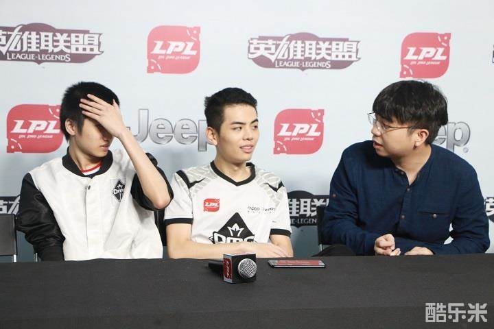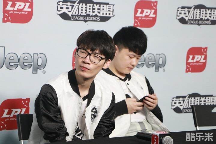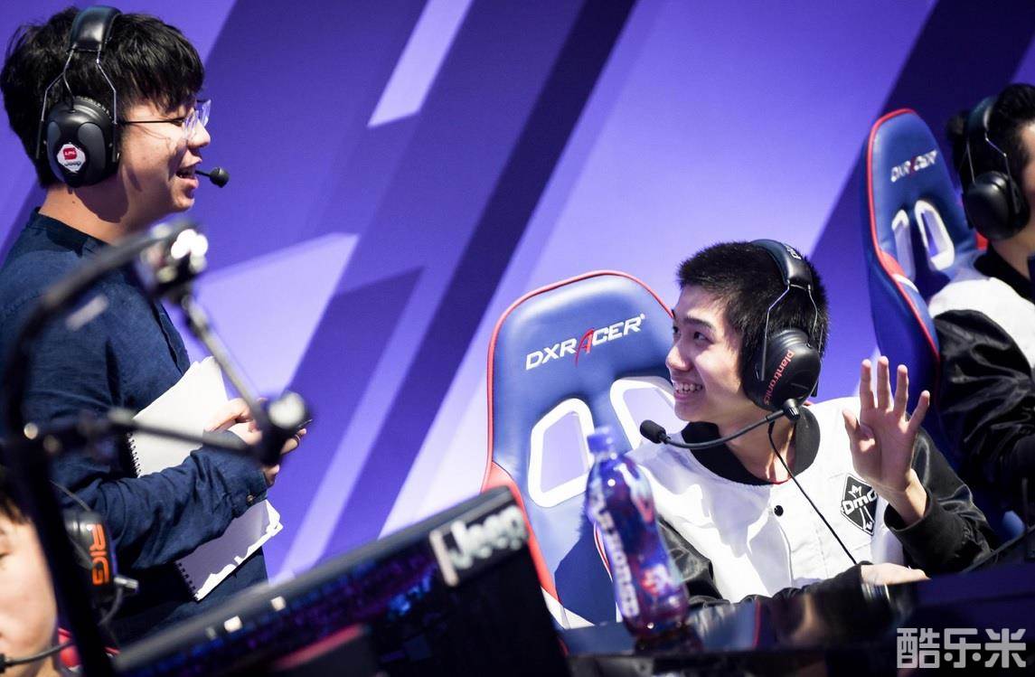 在赛后采访中,我们镜头捕捉下了双打野同时出现在采访席前的一幕:明哲教练在和World6回顾刚刚结束的比赛的失误之处,World6表现得有些局促;另一边的Jiekou和“自己的辅助”小五坐在一起,但是两个人并没有交流。Jiekou在认真地听着明哲的话,但是另一边谈得热火朝天的三个人并没有注意到他,于是坐在另一侧的他只能伸长了脖子。