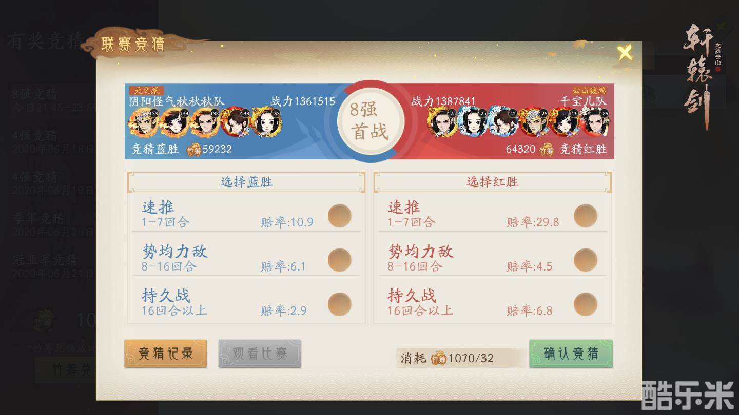 关注精彩决战的同时,少侠还可在竞猜活动界面免费领取竹筹参与实时竞猜,支持自己心仪的战队,赢取丰厚奖励!