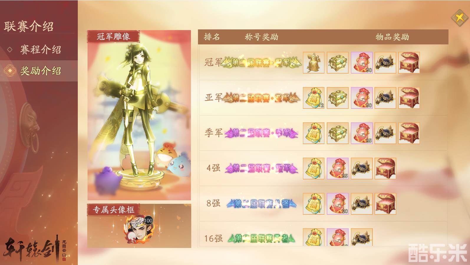 根据最终比赛名次,各支参赛队伍将获得包括全服雕像、实物奖杯、专属头像框及称号等丰厚礼赏!本服战队顺利晋级时,所有达到60级的在线玩家,还可获得一次惊喜奖励。