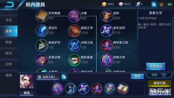 在后期,我们选择出痛苦面具,敌方肉盾英雄在中期感受到了甄姬伤害的恐怖性,基本在后期就会出非常多的法术防御来制裁甄姬,这时我们出痛苦面具有着少量的法术强度和高额的最大生命加成,还有高额的法术穿透加成,使得甄姬在后期还是会让敌方肉盾英雄感受到后期甄姬的伤害更加恐怖,贤者之书有着高额的法术攻击加成和高额的最大生命加成,使得甄姬在后期不仅有恐怖的伤害,还有着不错的生存能力,让敌方刺客无可奈何。
