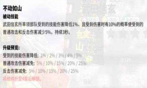 buff类光环,可以降低武田信玄和其部队受到的伤害,这个伤害包括技能伤害、普攻伤害甚至反击伤害。