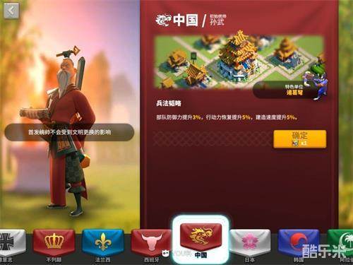 2.作为游戏开发商的自己的国家文明,中国还是受到了一点点照顾的,在主线任务中有派送不少孙武的雕像,也就是英雄碎片的意思,觉醒的难度较低,同时孙武的伤害在紫色将领里是排前面的,不管是文明还是统帅,想相当的强力,如果你是新手,那么中国再适合不过了。