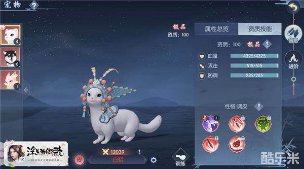 《浮世为卿歌》中宠物的天赋有着诸多种类,分为:勇猛、敏捷等等,其资质也都不尽相同,分为:普通、稀少、珍贵、极品。游戏中宠物们都各有所长,能够成为阁下在行走浮世之路时的一大助力,阁下可以在宠物养成界面,喂养自己的宠物,当亲密值满足了所需进度还可以将宠物进阶,让每位玩家都能自由培养自己的最佳拍档。