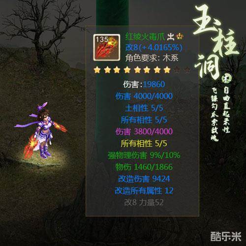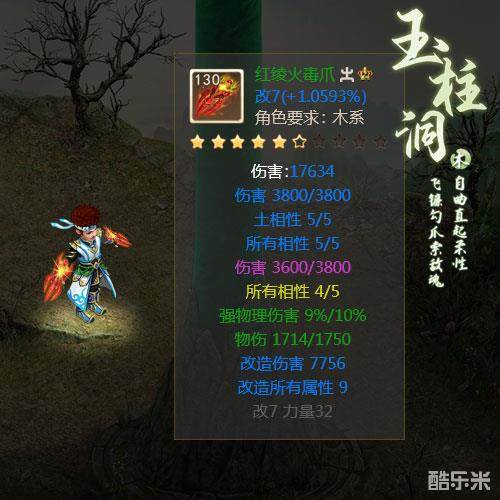 木系130级新武器“红绫火毒爪”通体燃烧着烈焰,散发着可远观而不可亵玩的压迫感,充分展现了130级木器修道者不可小觑的实力。