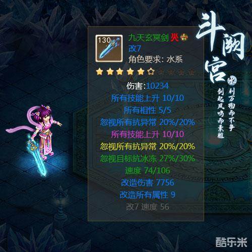 水系130级新武器“九天玄冥剑”通体冰蓝色,剑身似有冰焰燃烧,完美展示了130级水系的优雅与霸气。
