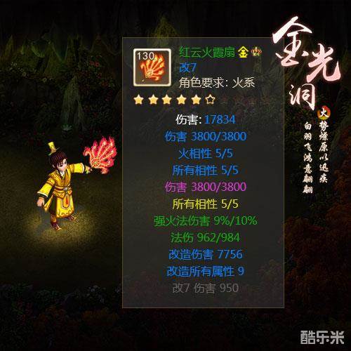 作为130级火系套装的核心 “红云火霞扇”,通体燃烧着熊熊烈焰,似有灵气不断溢出,130级火系的强大力量可见一斑。