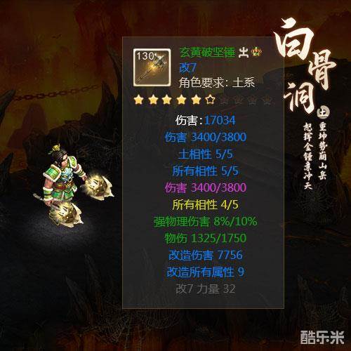 130级玄黄破坚锤金光萦绕,强大灵力难以完全内敛,与土系全新外观搭配,则完美的展现了力量与美。