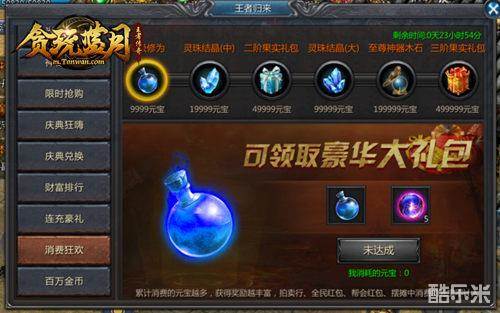 活动期间,玩家消费元宝达到对应要求,就可领取豪华大礼包!
