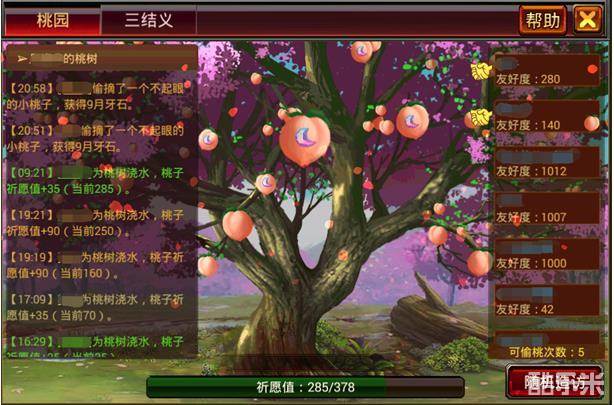 6、为好友的桃树浇水,不仅可以提升好友桃树的祈愿值,还可以增加玩家与好友的友好度。
