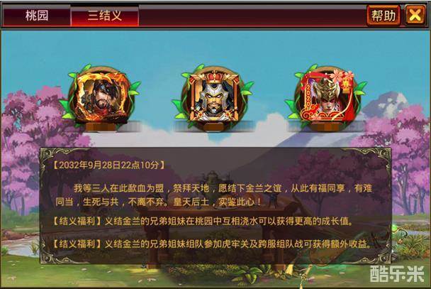 7、当三位好友互相之间的友好度均达到指定值,玩家将可以前往桃园义结金兰。