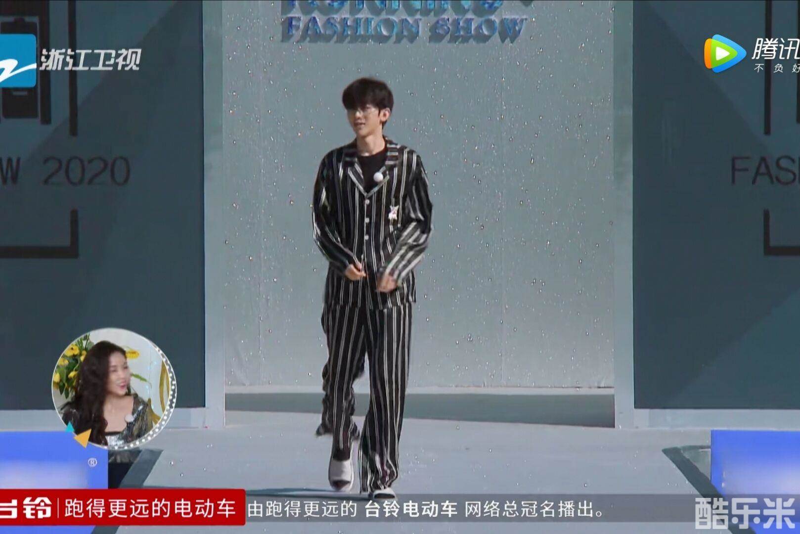 第四位出场的就是我们期待的蔡徐坤坤坤宝宝了,坤坤虽然是穿着睡衣可是依然的那么帅气,同样也是被黑衣人托到了走秀现场,我们的坤坤还有点害羞不好意思出来,等他一出来就成了全场最靓的仔,全场的目光立马投到了他的身上。