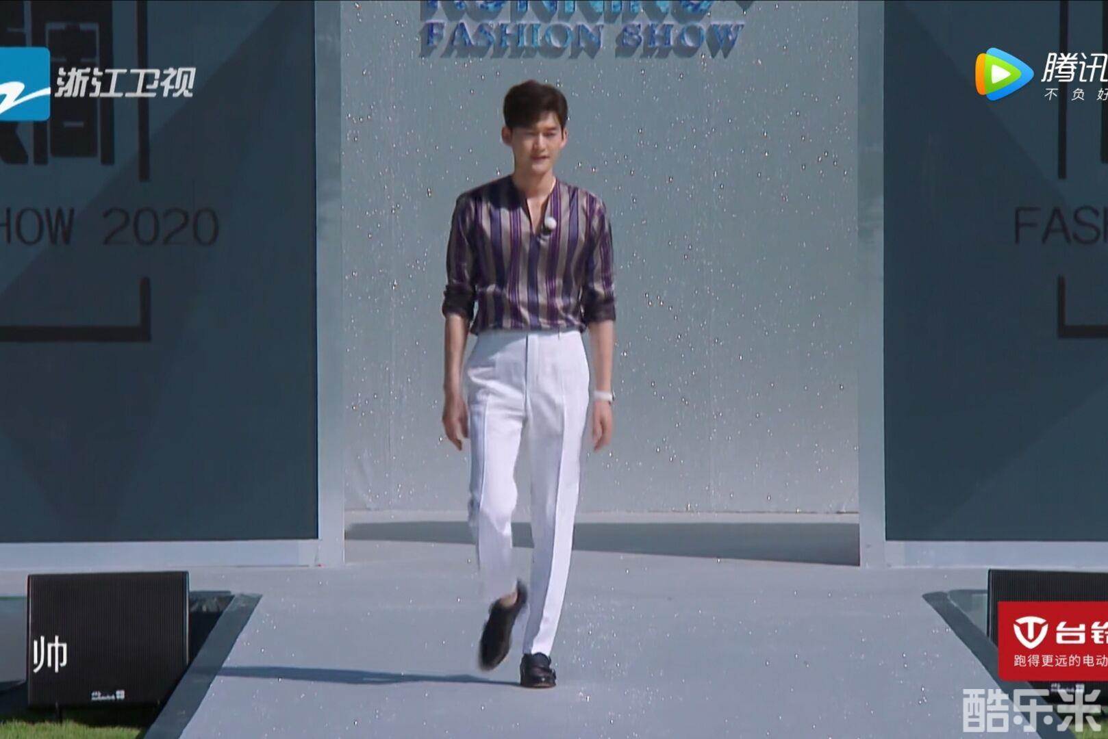 刚到门口的李晨主持人已经在召唤他了,李晨一亮相眼神立马惊呆了看着下面有那么多嘉宾,此时他还光着脚呢一脸懵的他伴随着主持人的介绍就向着男模台走来了。