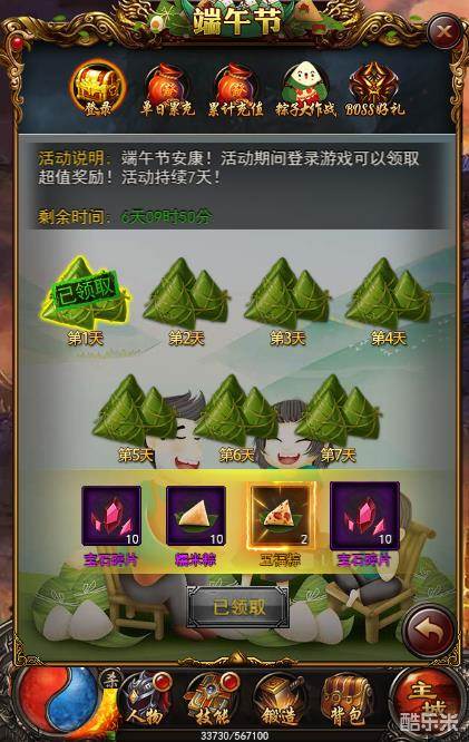 活动说明:活动期间全民、神域BOSS均有概率掉落糯米粽,更有概率获得五福粽!