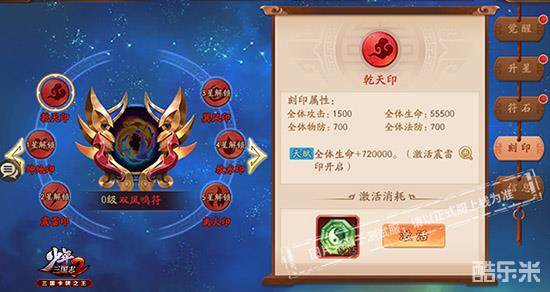 兵符系统扩展养成“刻印”火热来袭!合击重器,光芒耀世!升星兵符,激发合击兵符未知的潜力,借阴阳之力,攀战力之巅!以兵符灵印之灵,解锁合击刻印之力,触发武将技能之魂,助力少年战力飙升,属性暴涨,过关斩将,一平天下!