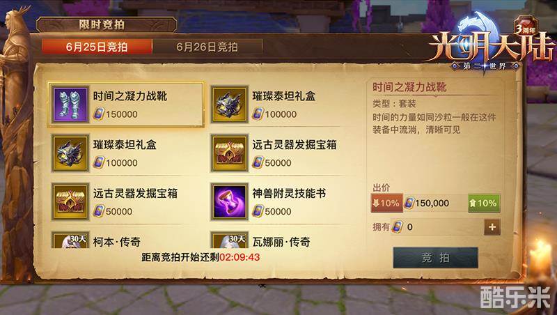 适逢玛瑟兰德传统端午佳节,摄政王为表彰各位勇士在过去几年抗击恶魔中的卓越表现,决定拿出自己私藏的珍宝来与各位勇士分享。端午节期间,皇室将会举办限时拍卖活动,6月25日、26日的20:10~22:10,各位勇士可以在活动界面自由竞拍心仪的拍品。特别地,当竞拍成功时,拍品将以邮件的形式进行发放。