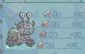 从机械形态的数据面板看,机械形态的蜗牛是主要增强了防御和追击能力,有45%的额外的防御和追击的加成,并且机械形态是蜗牛神经元系统进化到五级之后的最终的形态,需要大量的游戏资源。