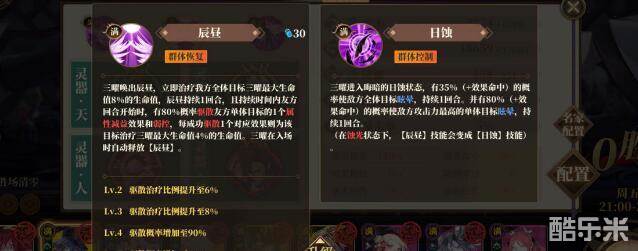 首先我们来看一下这个角色的技能:三曜唤出辰昼,立即治疗我方全体目标三曜最大生命值8%的生命值,辰昼持续1回合,且持续时间内友方回合开始时,有80%概率驱友方单体目标的1个属性减益效果和弱控,每成功驱散1个对应效果则为该目标治疗三曜最大生命值4%的生命值。三曜在入场时自动伟放【辰生)