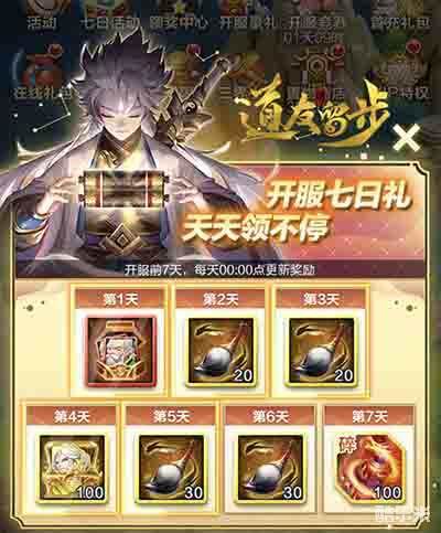 《道友请留步》新增开服豪礼活动,开服前7日每天登录游戏都能领取丰厚奖励。7日100连抽免费送,紫金神仙任选,道友们快来开启你的版本福利7天乐吧!