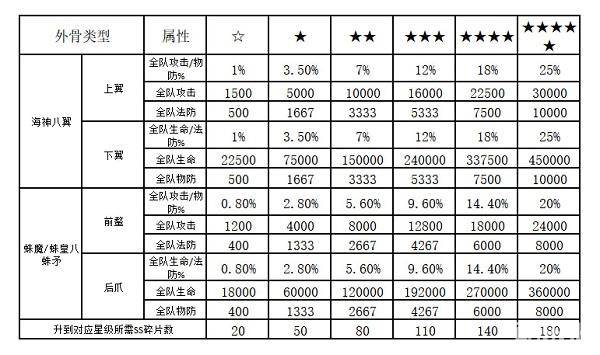 需要注意的是,全队属性将会在SS外附魂骨合成时生效,无论是否装备。同时,可以看出海神八翼相比蛛皇/蛛魔八蛛矛两套SS外附魂骨更加强力,让人不禁感叹海神八翼,永远滴神。