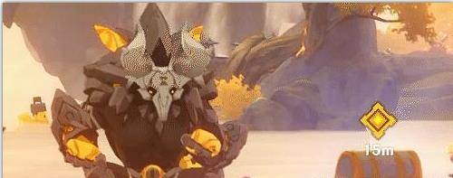 丘丘岩盔王怒吼一声,往身上附着了一层岩元素护盾。攻击方式发生改变,攻击范围扩大。