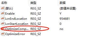 接着找到SOFTWARE-Microslft-Dfrg, BootOptinizeFunction,并找到OptimizeComplete,双击它。