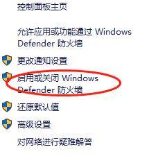 之后点击左侧“启用或关闭Windows Defender防火墙”