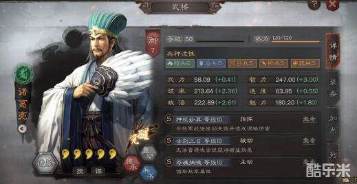 当自己为主将的时候前两个回合会获得10%规避效果,此效果可以回避伤害,不会触发攻击时带来的效果+突击,诸葛亮的智力和统率都很高,智力差距越高自带战法效果越强,本身就几率让对方主动战法失败了,这样能大大提高生存。
