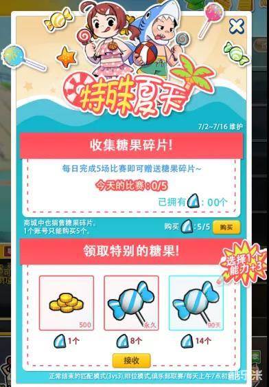 活动期间内每日累计打满5场,可以获得糖果碎片 1个(每日限完成一次)。