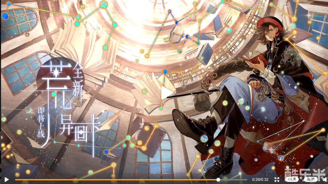 特别值得一提的是,本赛季的限定典藏异画卡,以荒的“星辰之境”为蓝本,创作了一幅具有浓烈日式大正风格的异画。在异画中,荒身处于一座巍峨壮丽的欧式图书馆,穹顶高耸,藏书如海。绚烂的星辰与散落的书籍,装点着画面,也象征着神明之信仰与科学之力量的冲突。故事背景中,荒是一位自欧美留洋归国的少年,幼时与奶奶一同经营着荒海神社。因为一场意外,奶奶去世,荒一方面陷入了对神明的质疑,一方面前去西方留学。归国之后,他带着对神明的愤懑研发出了可以预测未来的仪器,以此帮助了不少人。荒却发现,对未来的趋利避害,却让人陷入了更可怕的危机。如果想要像神一样,就必须要着眼全局。最终,荒接受高天原的邀请,成为了神明。