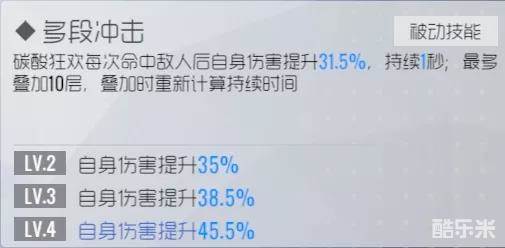 上限455%倍率的增伤技能,但是持续时间1秒相当于只对主动伤害生效。当前演习的剿灭中比较容易叠满10层buff,配合主动可以打出相当高的伤害。