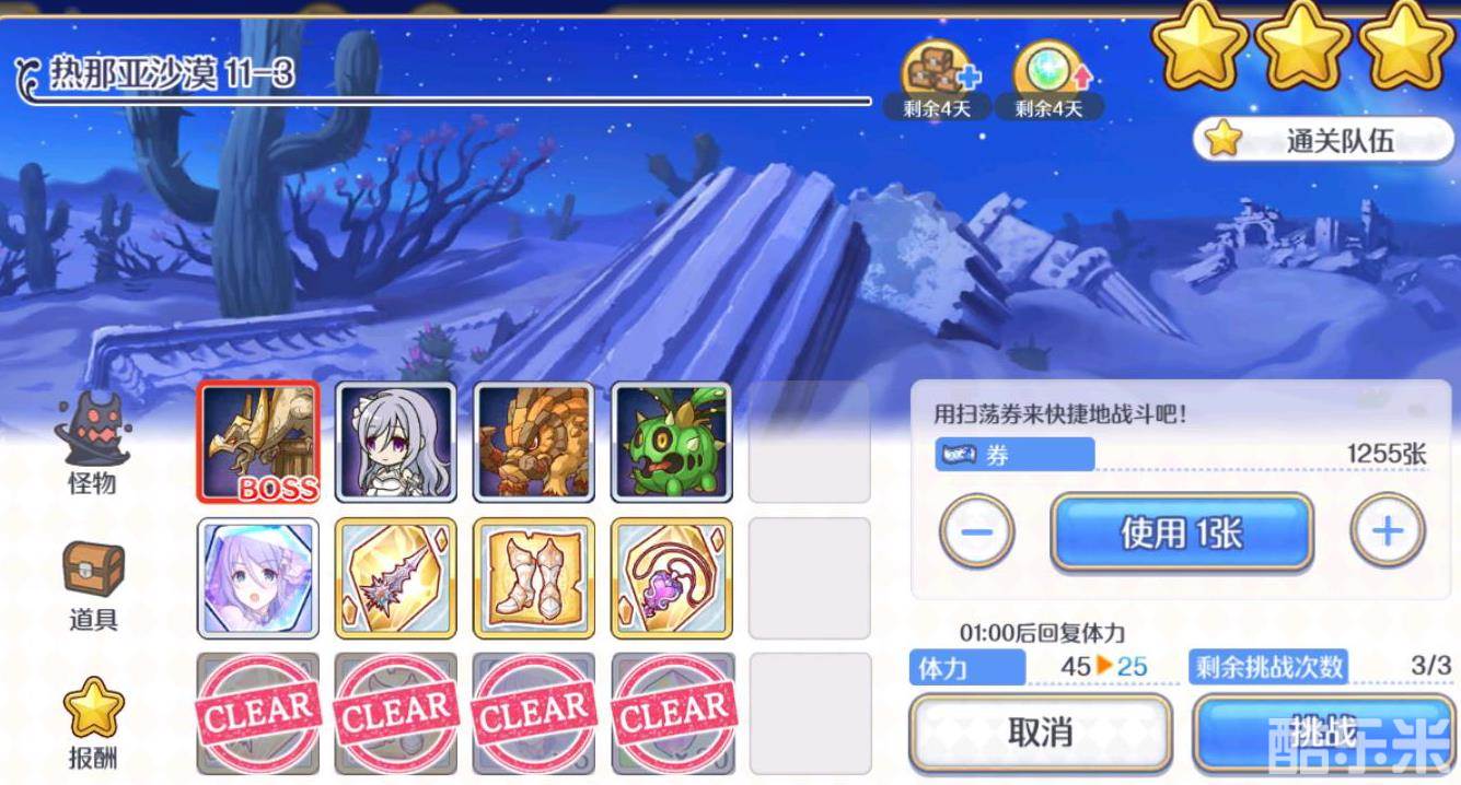最后编辑于5年前大家好 今天小编给大家带来一个船新的游戏公主连结 游戏包含多样玩法 养成 竞技场 团队作战于一身 画风独特十分可爱 多个高人气声优配音 每一个角色都拥有独特的性格跟光彩公主连结即将开启11图,那么11-3该怎么打?怪物阵容是什么?如何三星通关?下面小编就为大家带来公主连结11-3三星攻略,有需要的小伙伴不妨进来看看。