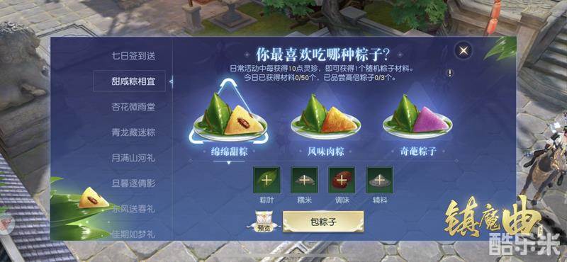 无论你是甜党还是咸党,《镇魔曲》端午庆典“玉粽袭香”都能满足你!尽享优化后的顺滑游戏体验之余,天命者们也别忘了参与其中,每日登陆就有丰厚好礼送上,龙吟锋毫、八荒钓、星月宝盒等应有尽有。此外,天命者们还能亲自收集材料包粽子,是甜是咸自己决定,品尝美味之余也有海量灵珍、经验、银币等奖励相送!为了纪念佳节,你也可以选购大礼包,把全新肩饰·糯小团带回家,每天都有软糯的熊猫伴身边,更有大量绑定元宝、海量银币、各类稀有道具等奖励同步送上!