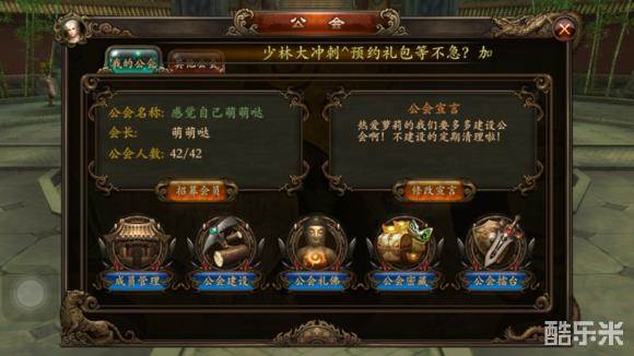 点击招募会员可以自动在聊天频道刷上公会招募信息,可以直接点击申请加入,公会宣言则是你最好的招募台词哟!