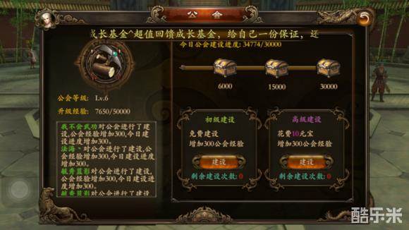 说到贡献的话,那么公会建设则必不可少了,每天可以用铜钱和元宝进行建设,而且达到一定目标还会有奖励的呢,公会经验值达到上限则公会自动升级哟,而公会密藏和公会擂台都是会提升自己的公会贡献的哟!