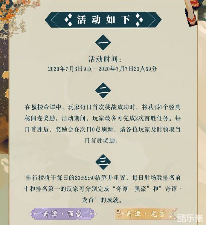 自上线以来,《阴阳师:百闻牌》的限时活动蜃楼奇谭每期推出不同的战斗主题,玩家需要在不同于寻常天梯或对战的特殊规则下,展开对局。7月3日9时至7月7日24时,全新主题【厚积薄发】将给玩家带来颇具新奇感的打牌体验。活动期间,玩家可完成两次当日首胜任务,并各获得经典秘闻卷*1的奖励。大家务必记得在当天领取道具,次日0时奖励会自动刷新哦。在活动中表现出色的玩家,还可以进入到每日排行榜单,当天胜场数排名前十的和排名第一的玩家可分别得到“奇谭·强豪”或“奇谭·龙首”成就称号。这两款成就为本次蜃楼奇谭最新加入,高手不容错过。