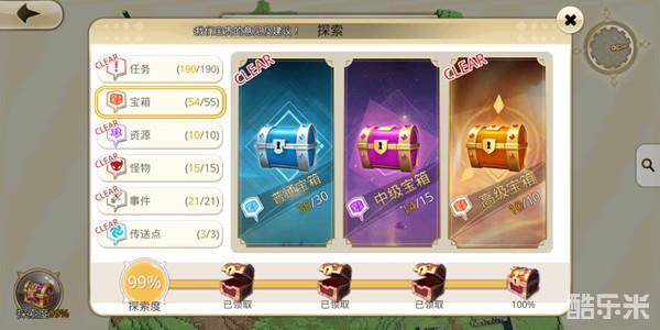 宝箱还是比较难找到的,中级宝箱一共有15个,小编到现在也只是找到了14个还差最后一个死活找不到。这里我把找宝箱的技巧告诉大家,就是多走多看,并没有其他的办法了。