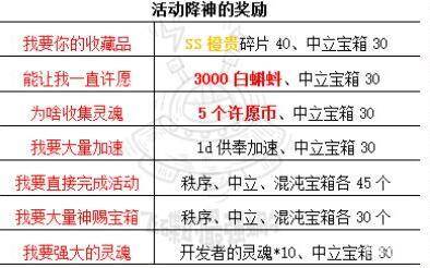 如果没龙珠硬冲,大概需要多出220H的供奉加速,即供需430H(17D22H)。3龙珠仅需多出40H,即250H(10D10H),应该也能屯到,影响不大。再附上供奉神降的奖励一览表和神龙奖励一览表(出处见图)