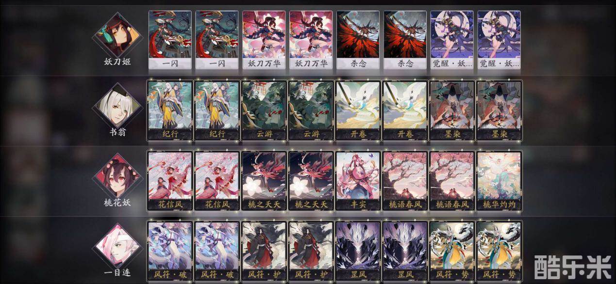 对于【厚积薄发】的特殊设定,玩家可以准备这两套预构筑阵容。第一套卡组修改自经典OTK妖刀姬,完美地利用了鬼火与攻击次数,这两个妖刀姬需求度较高的资源。在本卡组中,妖刀姬可以早早觉醒,并开始触发连斩能力。书翁、桃花妖与一目连的过牌与单体解场能力,确保了牌手不被快攻对手抢占场面。而一目连的“风符·护”可以换成其他高勾玉形态牌来加强后期能力。